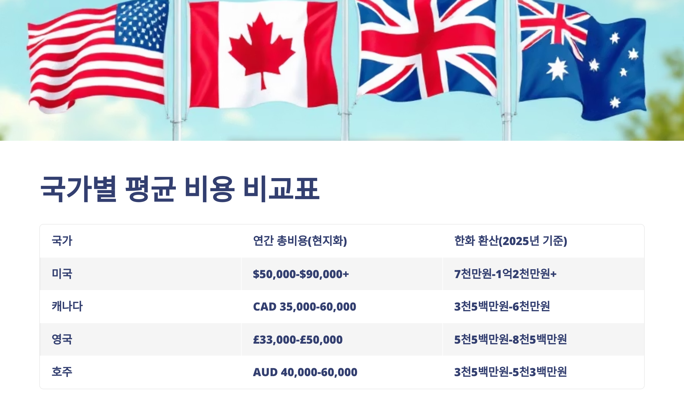 💸 2025년 사립고 유학 국가별 평균 비용 비교