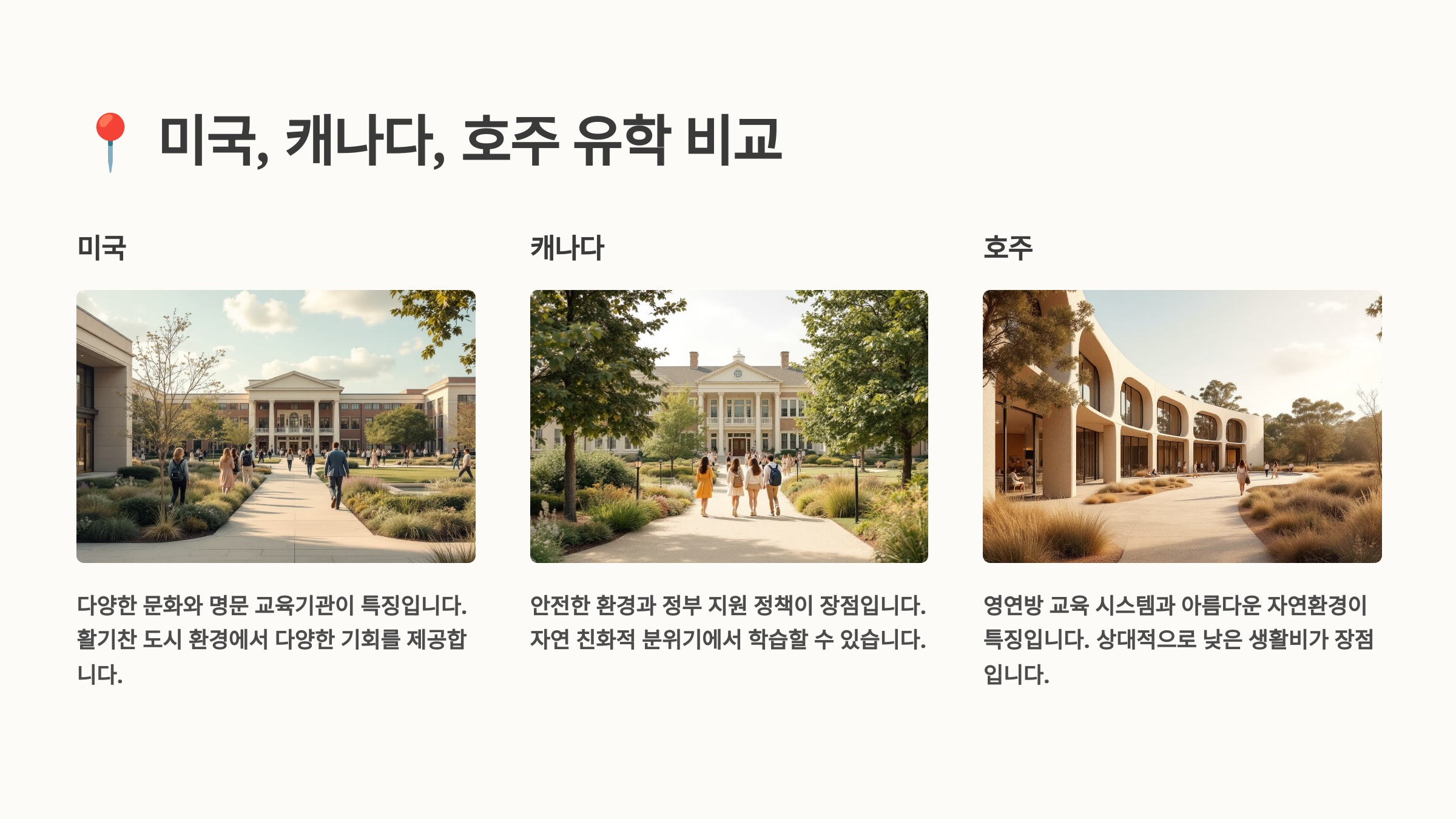 📍 미국, 캐나다, 호주 유학 비교