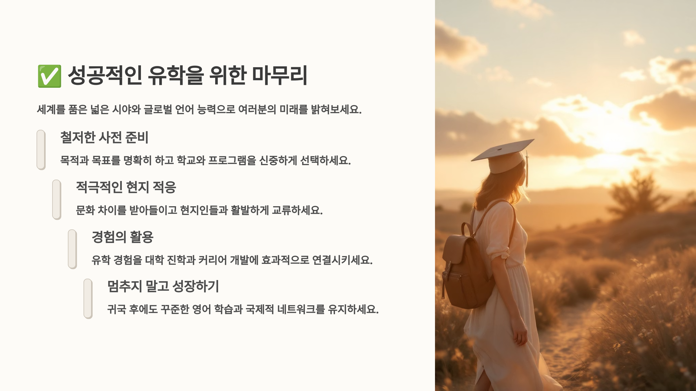 후기를 보면 알 수 있어요. 유학은 단순히 좋은 학교에 가는 게 아니라 자신을 바꾸고, 평생 쓸 자산을 만드는 여정이라는 걸요. 이야기를 통해 유학의 현실을 꼭 함께 느껴보세요! 🌏💬