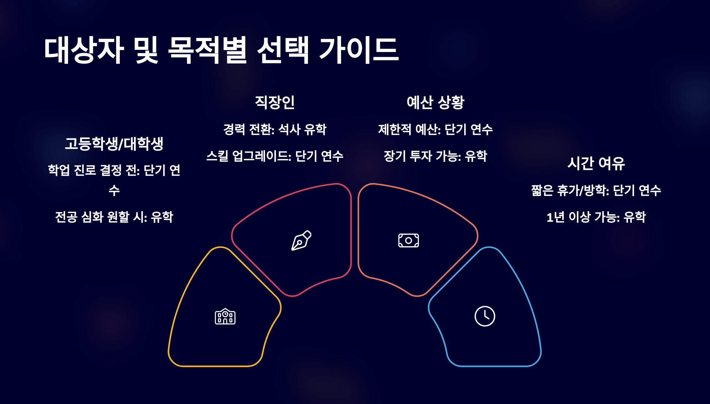 정리하면, 유학은 투자형 장기 프로젝트고 연수는 경험형 단기 프로그램이라고 보면 돼요. 💡