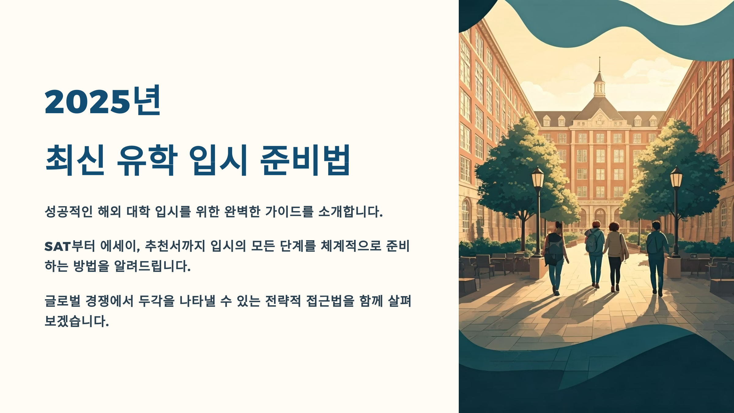2025년 유학 입시는 그 어느 때보다도 전략적인 준비가 중요한 해예요. SAT 디지털화, 추천서와 에세이 평가 강화, GPA 트렌드까지 입시 환경이 바뀐 만큼 준비 방식도 함께 달라져야 해요! 📊✍️