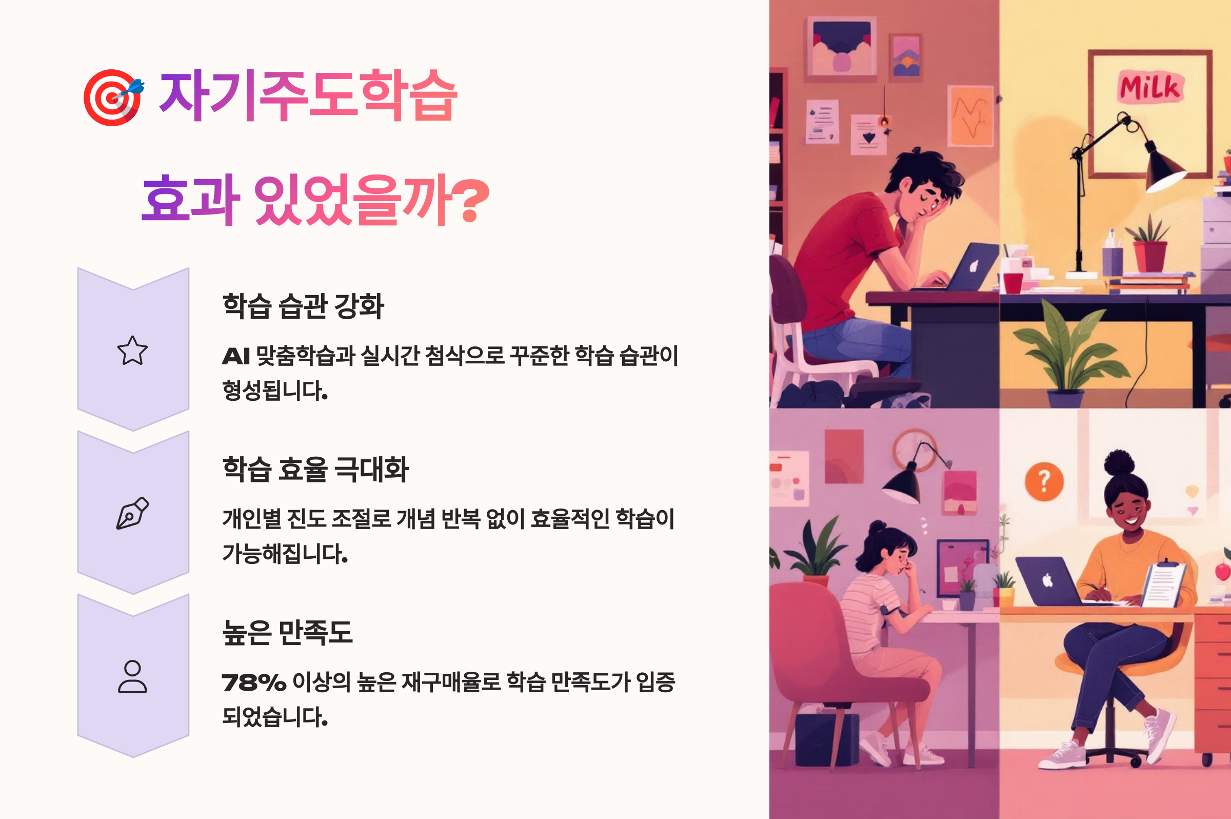 • 🎯 밀크T: AI 기반 개별 맞춤 학습과 자기주도 루틴에 최적